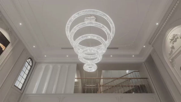 5 Rings Crystal Chandelier Modern LED Stair High Ceiling CL-5RCCS